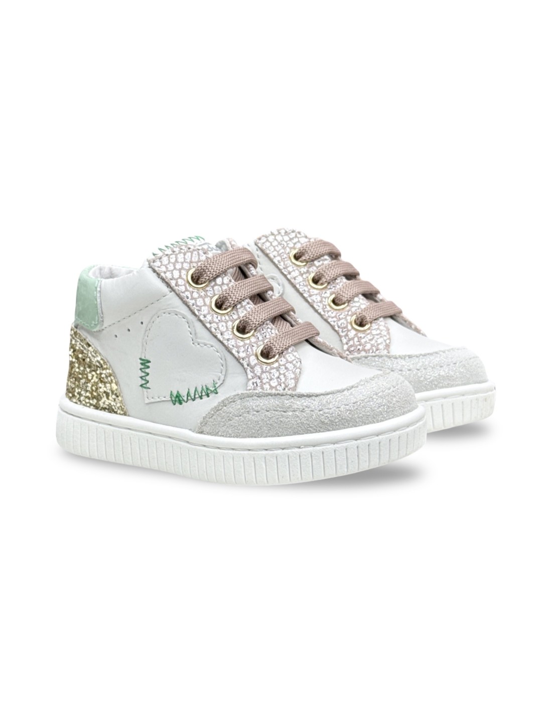 Balducci MSPORT4883 sneakers bambina in pelle/glitter bianco/acqua/oro