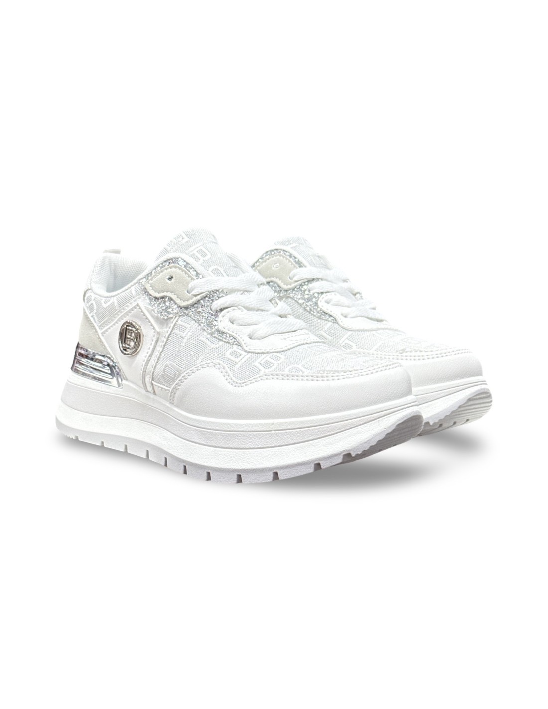 Laura Biagiotti 9631 sneakers donna in pelle/tessuto/glitter bianco/argento