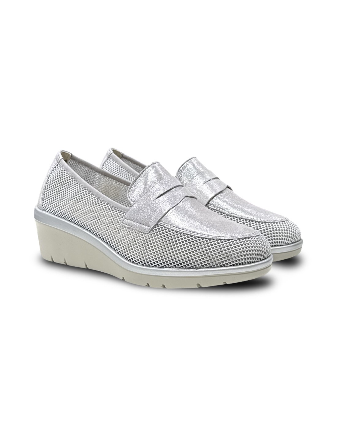 Cinzia Soft scarpe donna con zeppa in pelle/tessuto traspirante